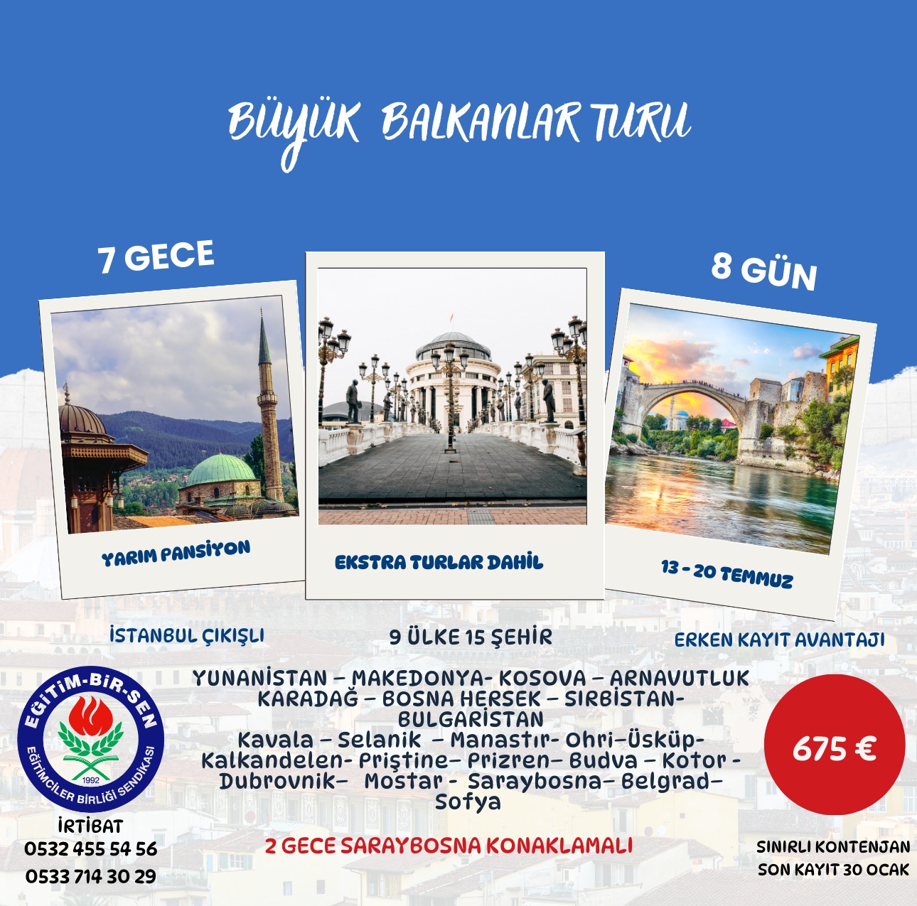• Üsküp, Manastır, Resne, Ohrid, Tiran, İşkodra, Budva, Kotor, Trebije, Mostar, Saraybosna Panoramik şehir turları